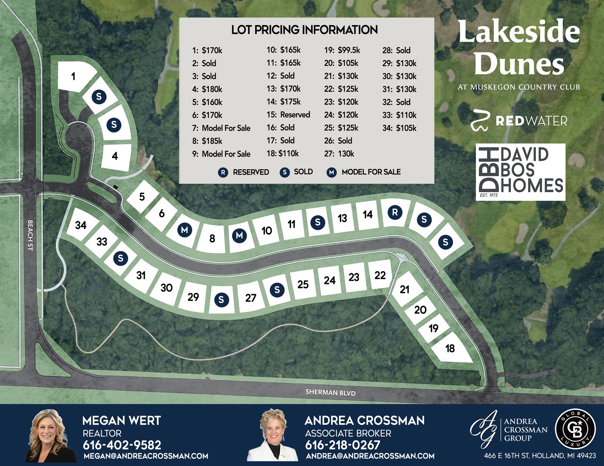 Situated on a private road at Sherman Boulevard and Beach Street, the community features 34 exclusive semi-custom club home sites. In partnership with David Bos Homes, known for crafting homes of elegance and quality, Redwater presents Lakeside Dunes, offering a variety of semi-customizable floor plans tailored to meet your needs.