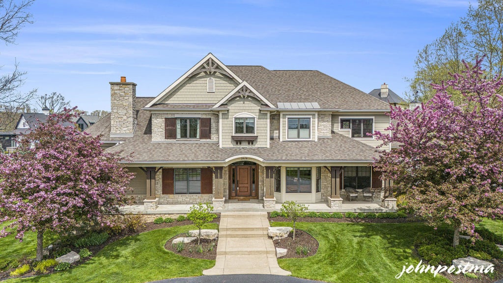 MONTREUX: Discover unparalleled excellence in Ada's premier gated community. This one-owner, custom-built masterpiece, by DeHaan is ideally positioned on one of the most sought after lots in Montreux & backs up to 11 acres of pristine natural preserve. Every inch of this exceptional home reflects superior craftsmanship, thoughtful design, & timeless elegance. Step through the grand front entry into a striking 3-story open staircase that sets the tone for what's to come. The main level features an open-concept layout enhanced by soaring vaulted ceilings with rich wood beams, a stunning stone hearth fireplace, & expansive windows overlooking the tranquil pond... A second great room with its own fireplace adds versatile living space. The formal dining room stuns with its tray ceiling, while the executive office showcases exquisite, raised paneling. The gourmet chef's kitchen is a dream with a center island, double pantries, & seamless access to a wraparound deck ideal for entertaining. A spacious rear entry hall includes 2 home management stations & a generous walk-in closet. Relax year-round in the inviting screened porch with serene views of the private backyard. A handicap-accessible guest suite completes the main floor. Upstairs, the luxurious primary suite boasts dual walk-in closets & a spa-like bath. You'll also find a convenient laundry room, a Jack-and-Jill bathroom shared by two bedrooms, and an additional en-suite bedroom. The walkout lower level is an entertainer's paradise - featuring a 2-tiered theater room with surround sound, a cozy family room with fieldstone fireplace, a sun-filled sitting area, a full kitchen, an exercise room (6th bedroom), full bath, & abundant storage space. Oversized 3-car garage includes a staircase to the lower level, wet sink, dual exits, & a pull-down staircase to unfinished attic storage. Zoned heating. Dual HVAC. 6" Walls. Pella Windows, Rich cherry hardwood floors throughout the main level. The professionally landscaped yard features a stone patio with firepit, raised garden beds, and a hot tub areawith space perfectly suited for a future inground pool. Unwind with captivating views of River Valley sunsets, in a home that perfectly blends nature with luxurious comfort - an opportunity not to be missed!