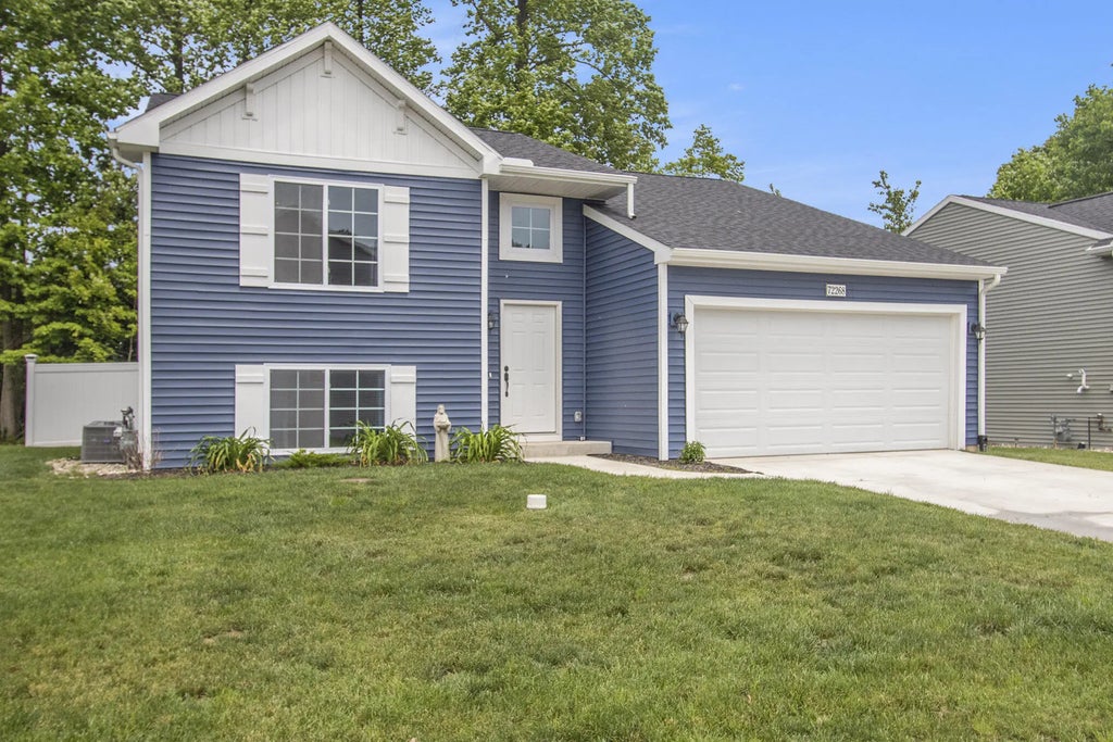 Step into this stylish and well-maintained 3-bedroom, 2-bath home offering both functionality and flair. The main level features a living room with vaulted ceilings and charming wainscoting, creating a bright and open space. The upgraded trim package, including doors and finishes, adds a modern touch throughout. The kitchen is a standout with granite countertops, upgraded cabinets, a custom bar area, and stainless steel appliances. An expansive primary bedroom and bathroom with upgraded glass shower door are also on the main. The lower level offers two bedrooms and a full bath, providing additional living space. The finished garage adds extra versatility and storage options. Outside, the upgrades continue with a new oversized deck and cement pad—perfect for summer gatherings. Professional landscaping creates a peaceful and serene space to relax. For hot summer days, enjoy the HOA's inground pool! This home blends thoughtful updates with high-end finishes, move-in ready- don't miss your chance to make it yours!
