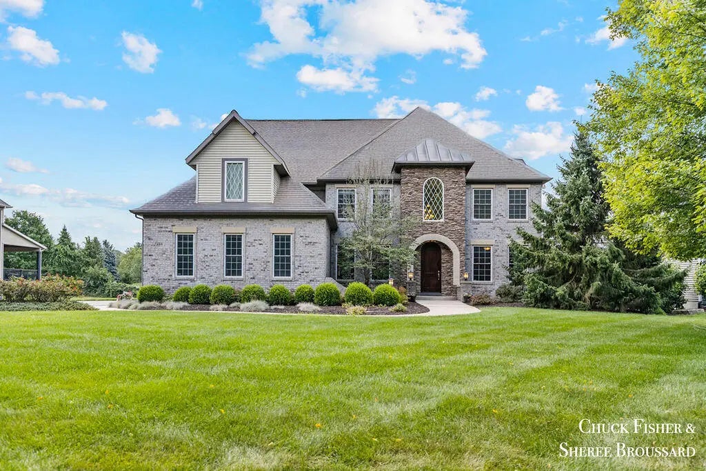 Welcome to 7286 Storey Book, an elegant residence in the gated, Old European cottage-themed Storeybook community—an address where homes rarely come available. This thoughtfully designed neighborhood is celebrated for its lush landscaping, charming architecture, and harmonious blend with nature, all within the award-winning Forest Hills School District. Perfectly situated between Thornapple Valley Community Park and Ada Township Park, the location offers exceptional privacy while being just five minutes from downtown Ada and moments from the Thornapple River.