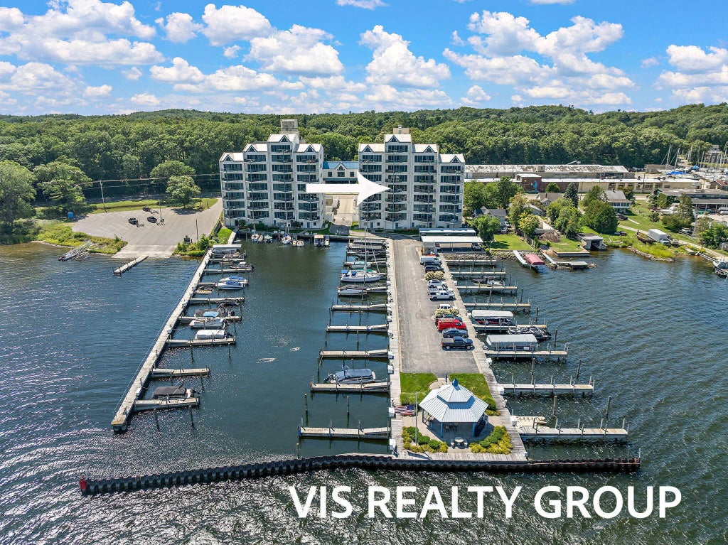 Experience waterfront living at its finest in this stunning 4th-floor Balcom's Cove Muskegon Lakefront condo offering nearly 1,500 sq ft of open-concept living space, breathtaking views, and spectacular sunsets. Featuring New Flooring & Paint throughout, 2 bedrooms and 2 baths. This beautifully finished unit includes a spacious primary suite with a double vanity, jetted tub, walk-in closet & amazing views. The modern kitchen, updated in 2019, is equipped with stainless steel appliances, granite countertops, and a large peninsula perfect for entertaining. Enjoy panoramic lake views from the living area and private balcony. This condo also includes a 40-foot deep-water boat slip with power and water hookup, a private 12' x 5.5' storage room, 1 garage stall, and 1 carport space. Located across from Muskegon Country Club and less than a mile to Muskegon's public beach, beachfront dining, and local shops, this conco offers both convenience and lifestyle. Monthly HOA covers water, sewer, trash, lawn care, snow removal, upkeep, building entrances, elevators, mail area, garages & carports, walkways, and includes a full-time maintenance staff. The building features a new Air Conditioning system. Heat and A/C maintained by the HOA,owner pays only electric with low monthly bills. Pets are allowed, and rentals require a 6-month minimum stay. This is luxury, low-maintenance lakefront living at its best.